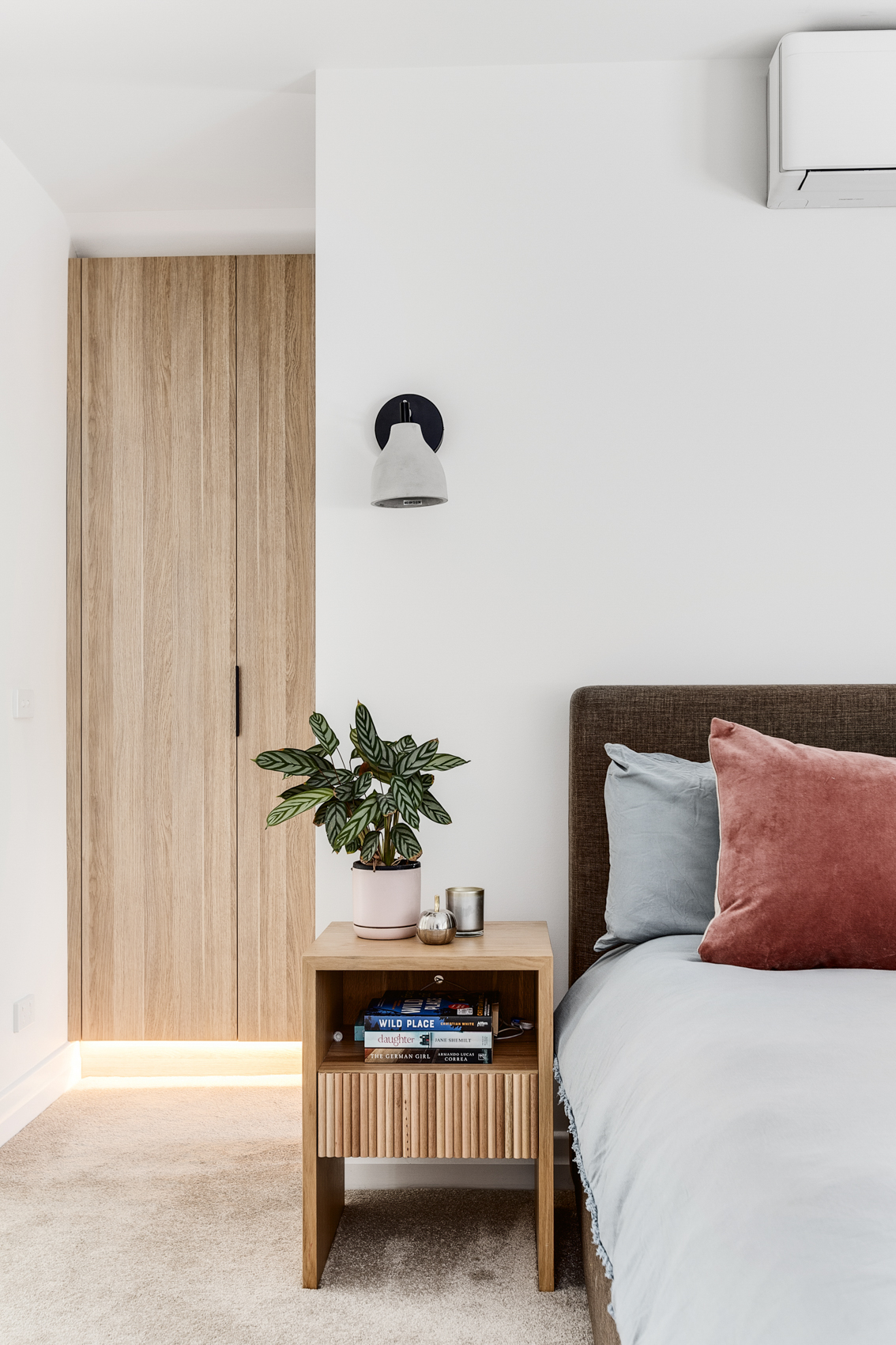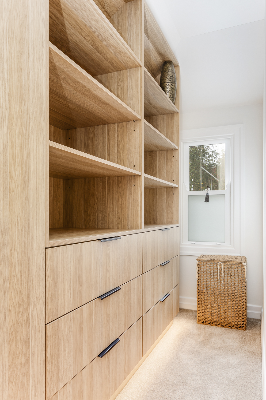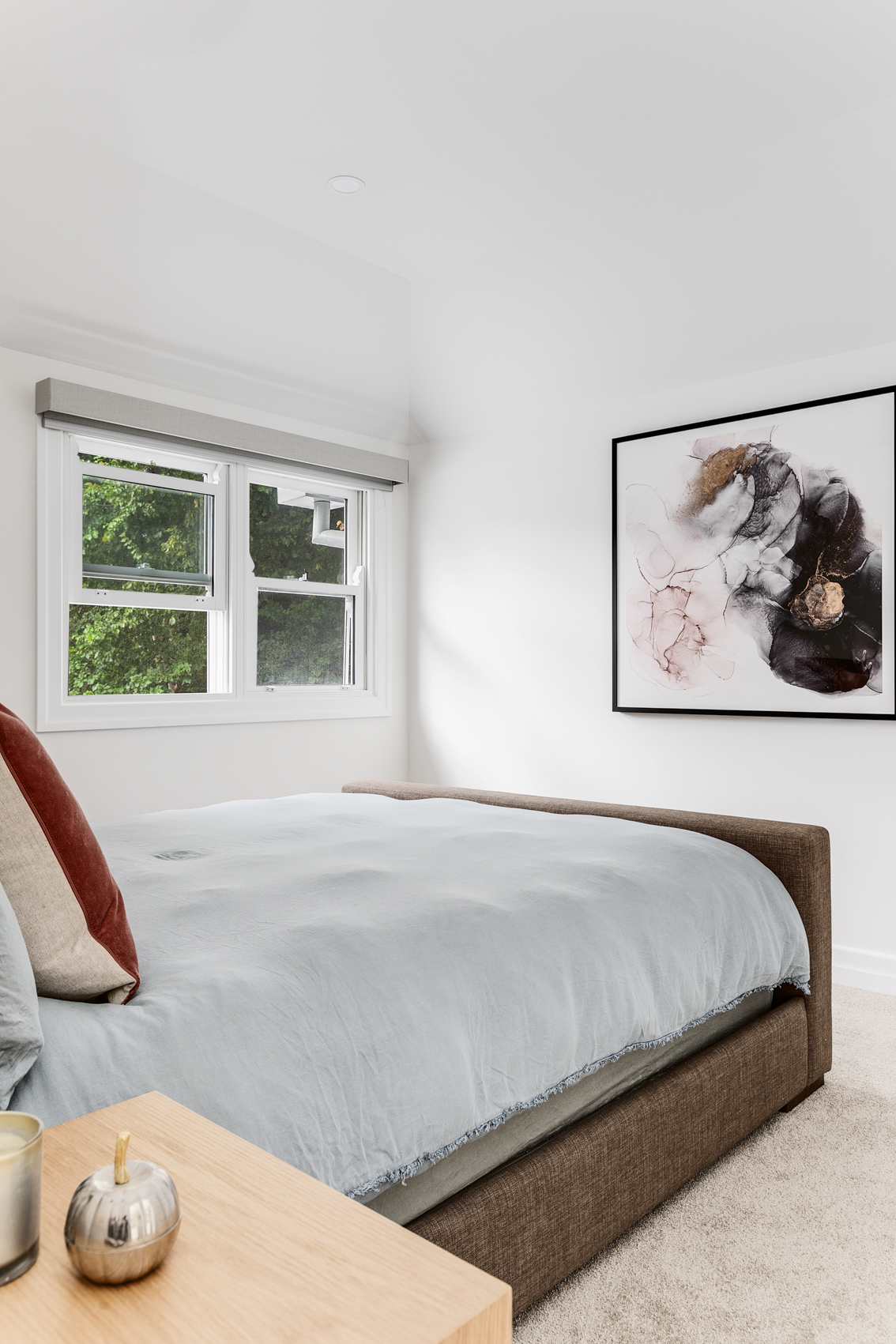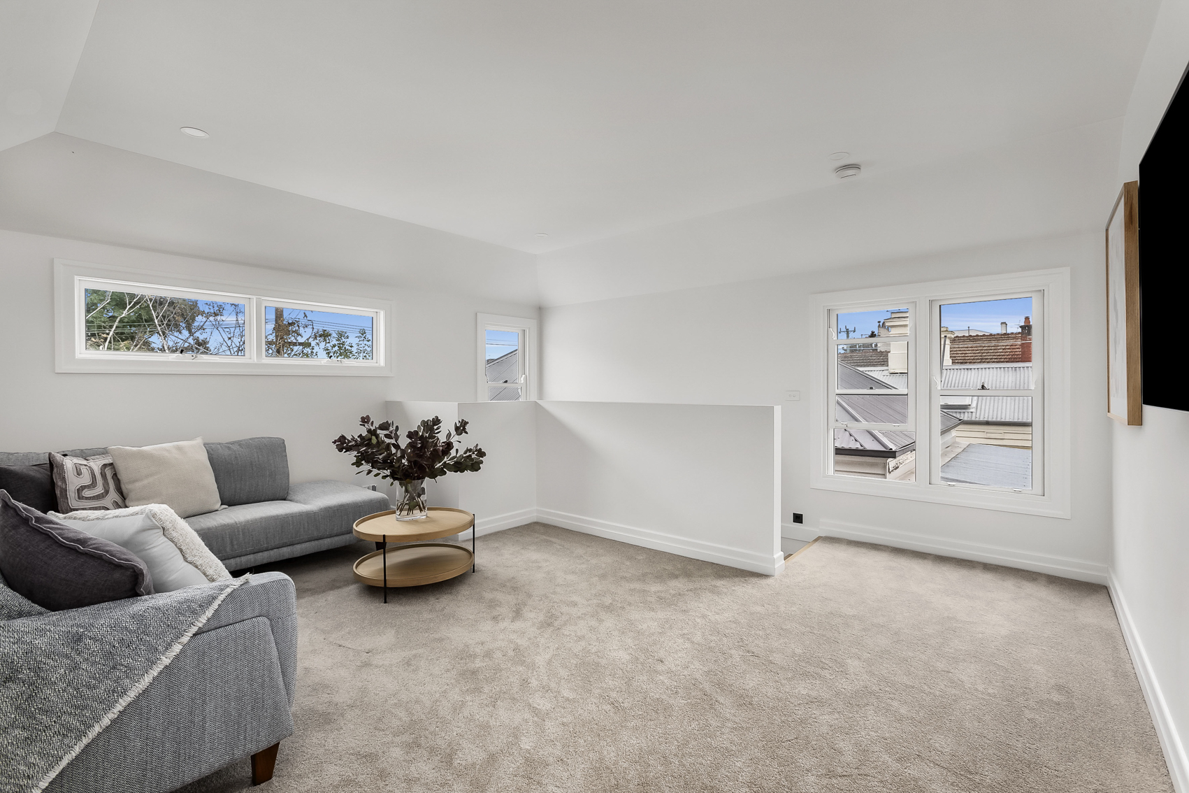This light-filled home features an open tread staircase offering a warm and welcoming feel to the home. At the top of the modern timber staircase is a spacious landing that offers beautiful glimpses of the cityscape.
