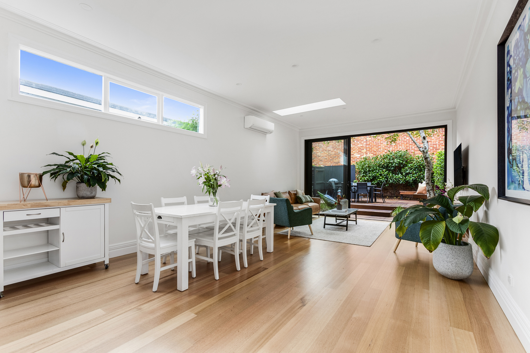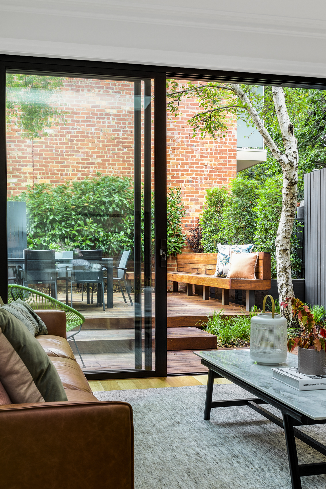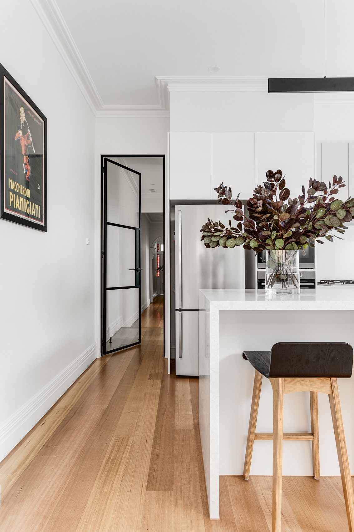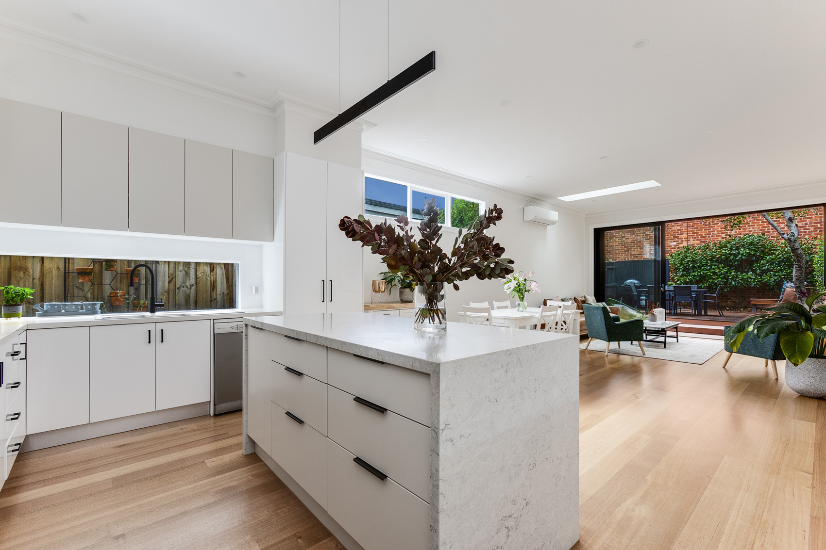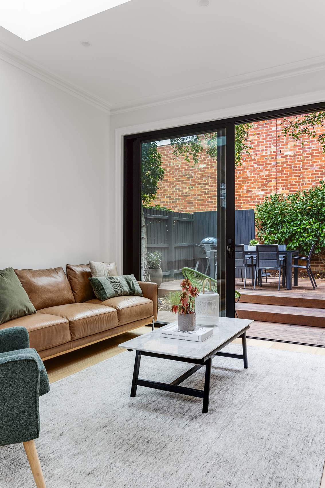 Whilst respecting the existing architecture, we modernised the downstairs with the addition of an open plan kitchen, dining and living space. The adjacent courtyard forms an extension of the living space, as well as provides a tranquil space to relax for hours.