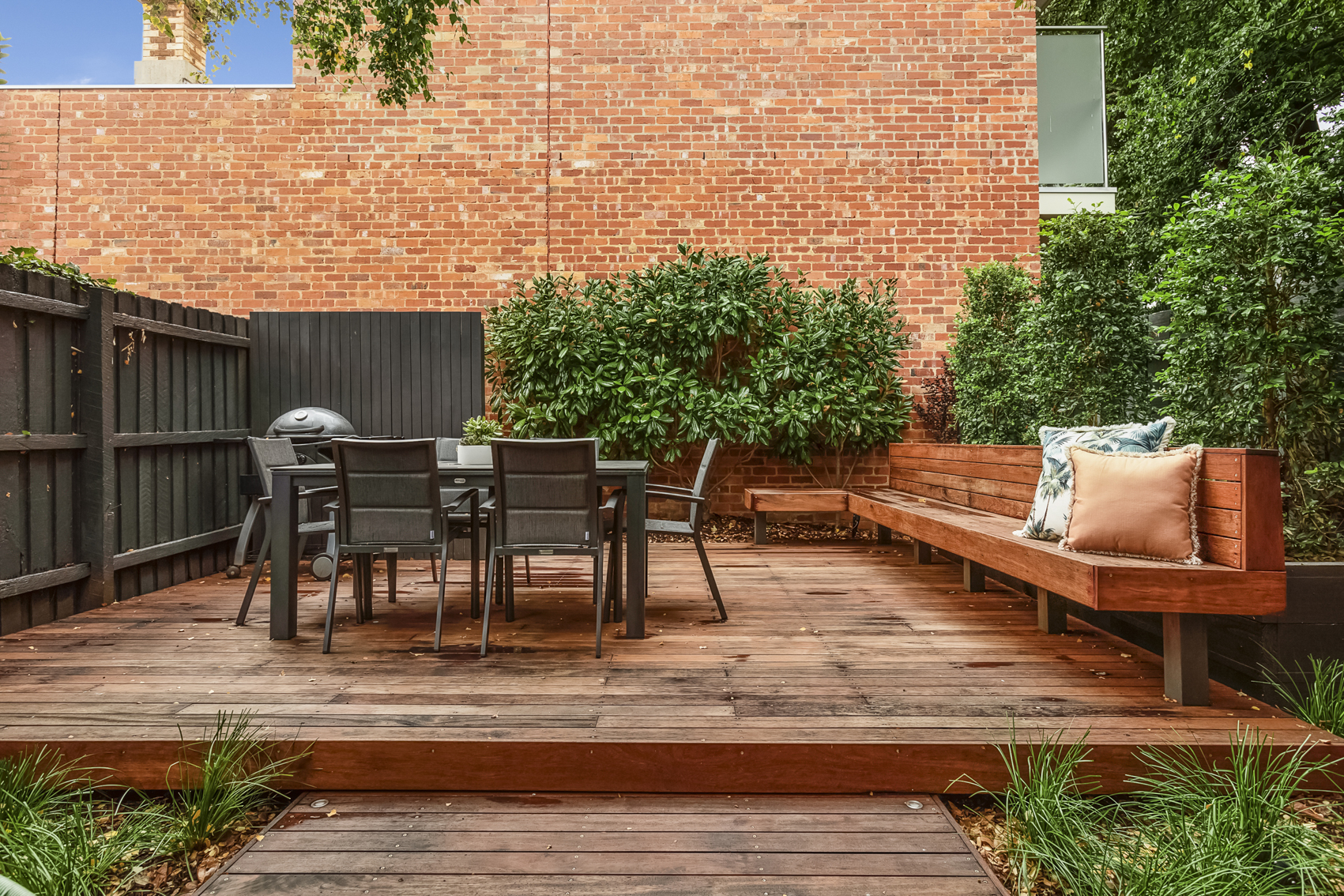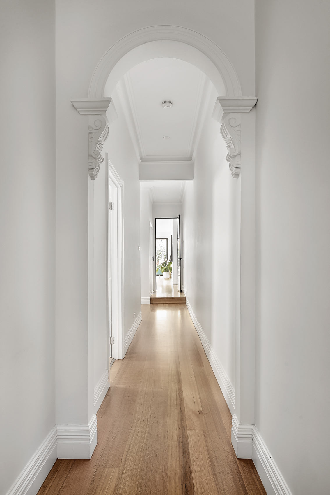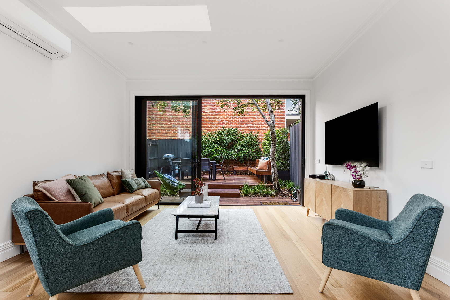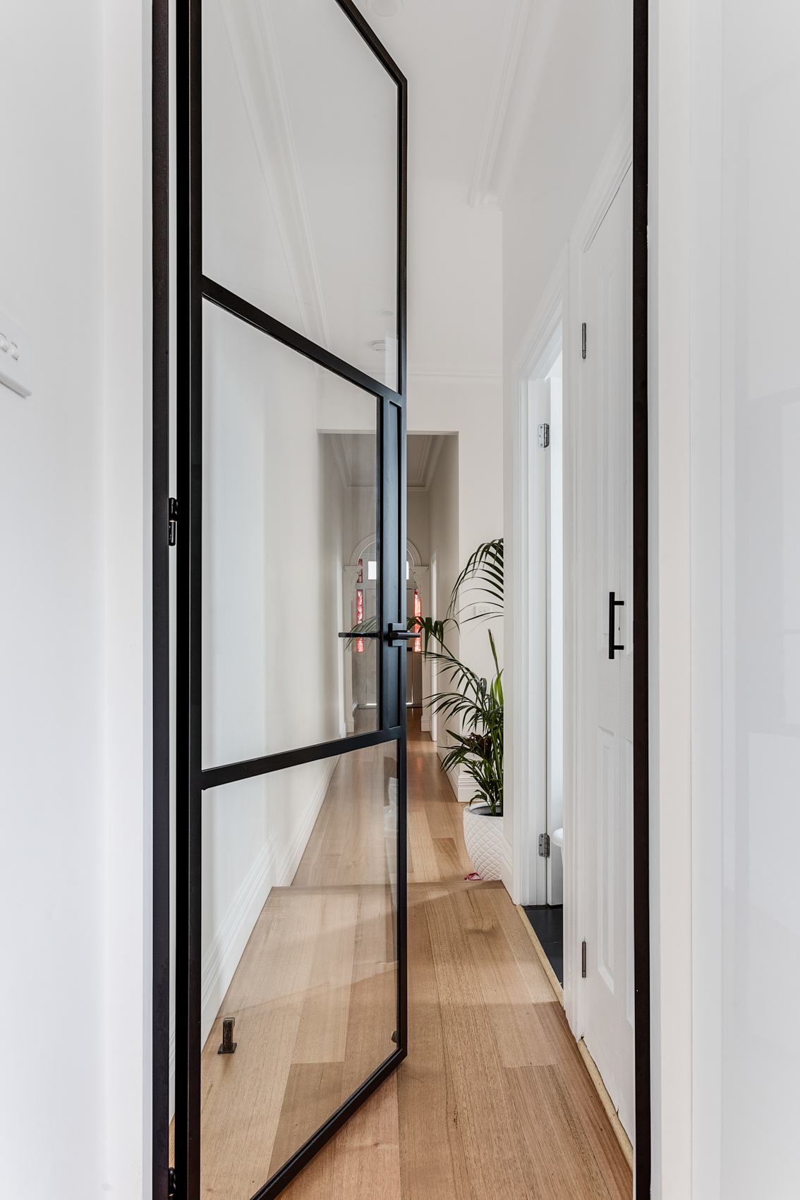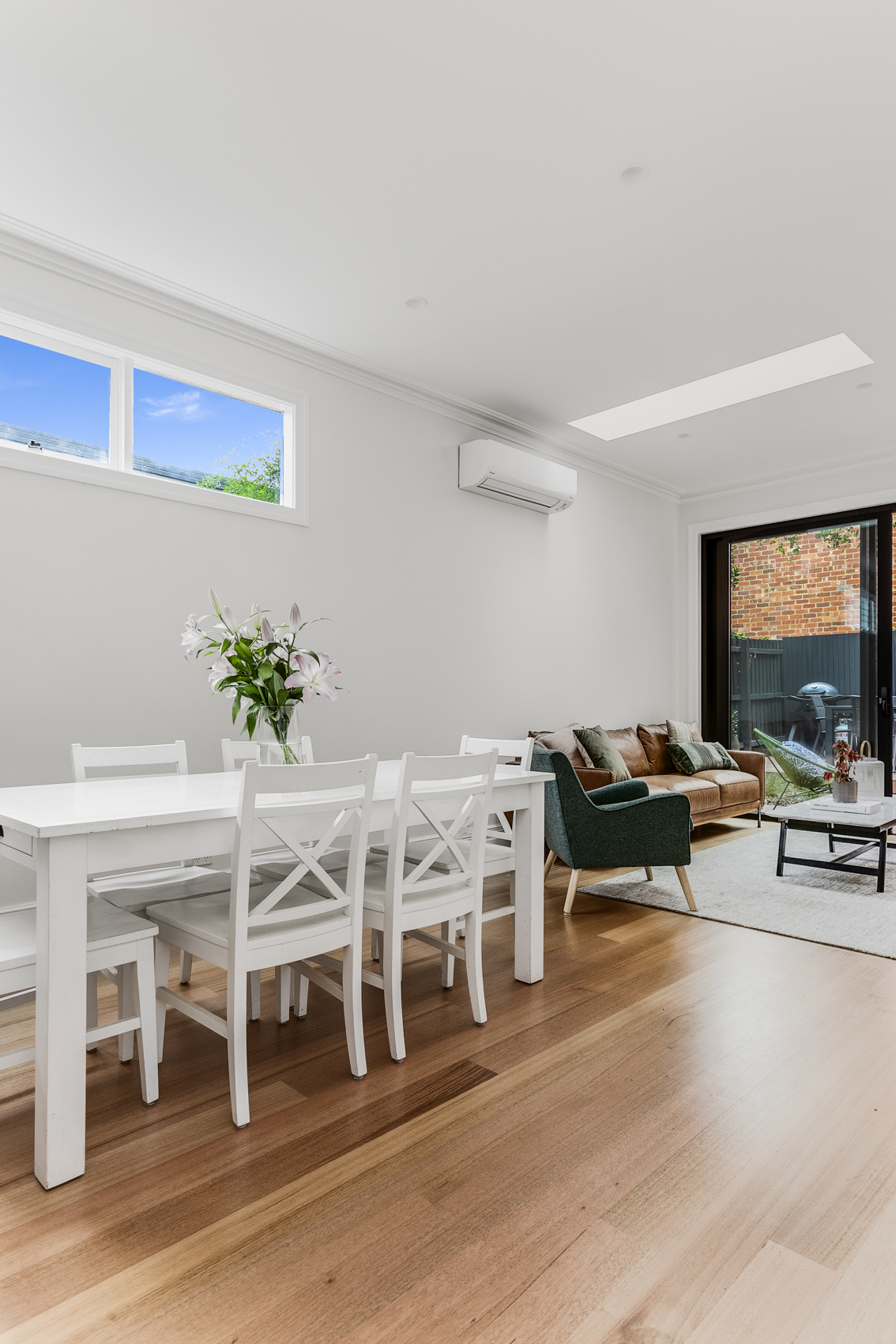 Whilst respecting the existing architecture, we modernised the downstairs with the addition of an open plan kitchen, dining and living space. The adjacent courtyard forms an extension of the living space, as well as provides a tranquil space to relax for hours.